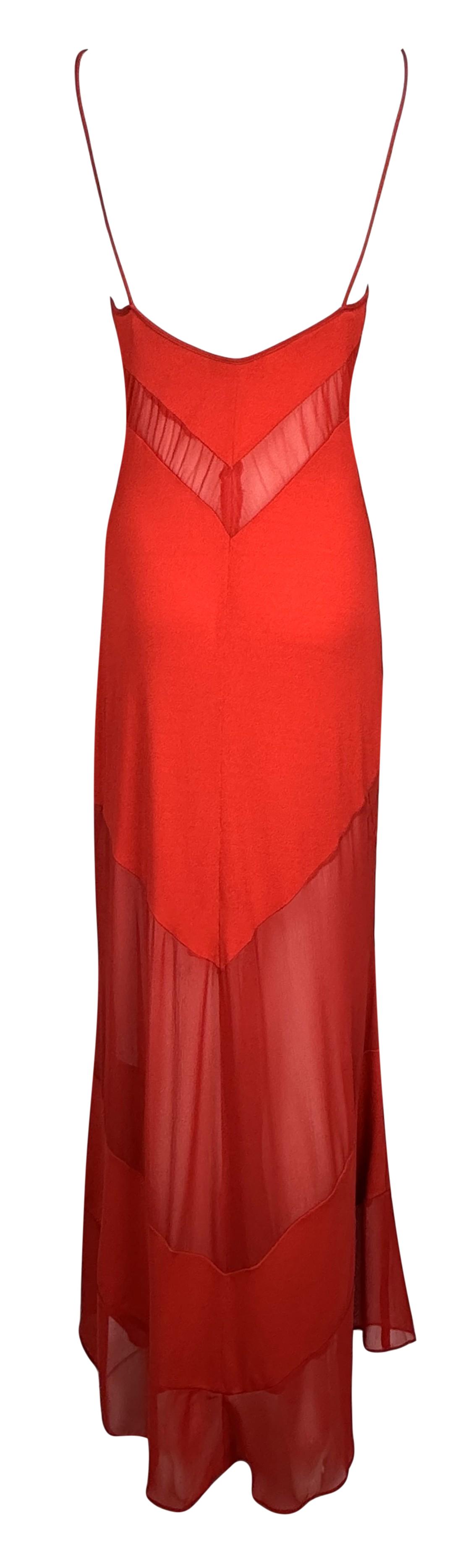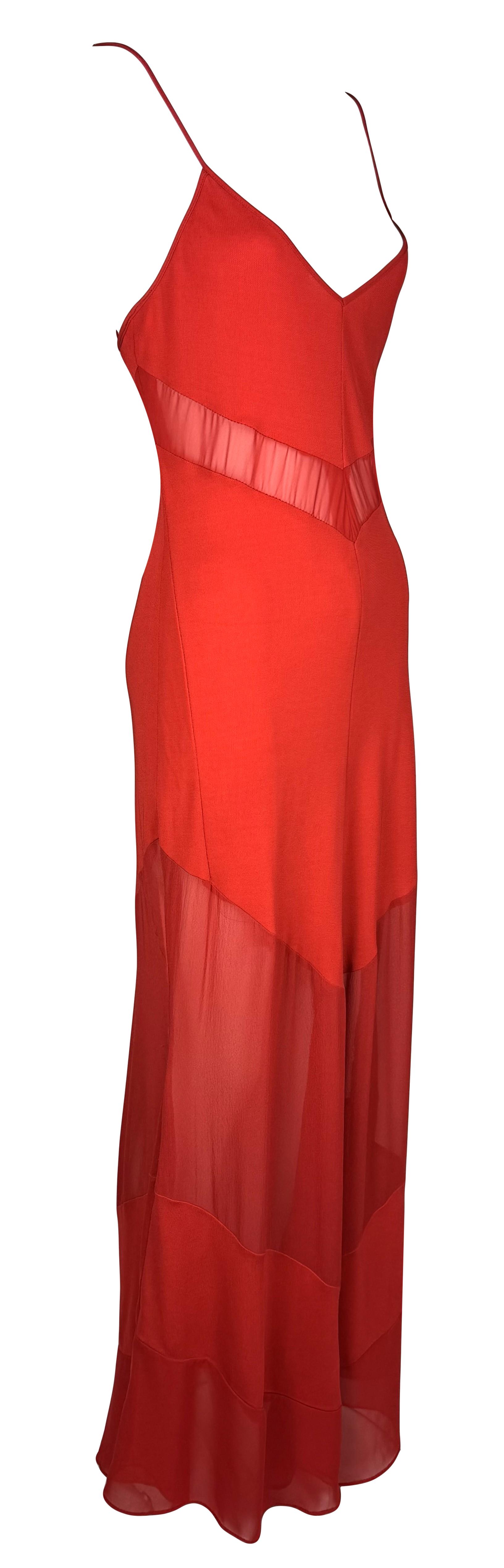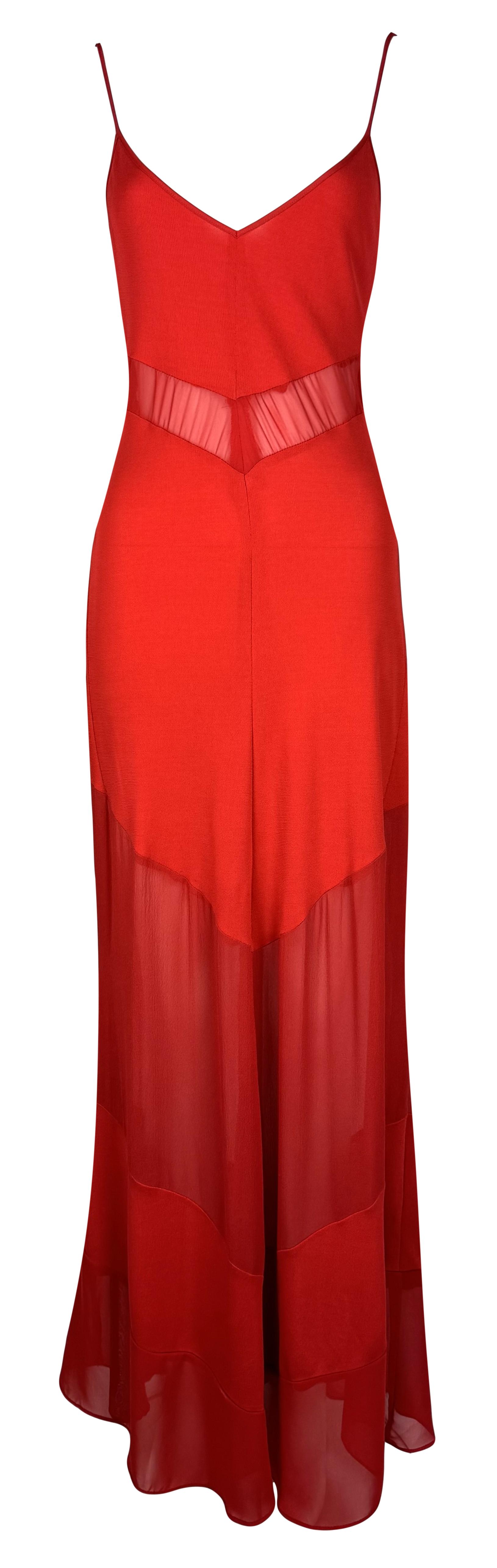 Vintage S/S 1999 Fendi by Karl Lagerfeld Sheer Red Tank Maxi Dress